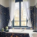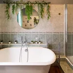 Bathroom facilities also include a washing machine.